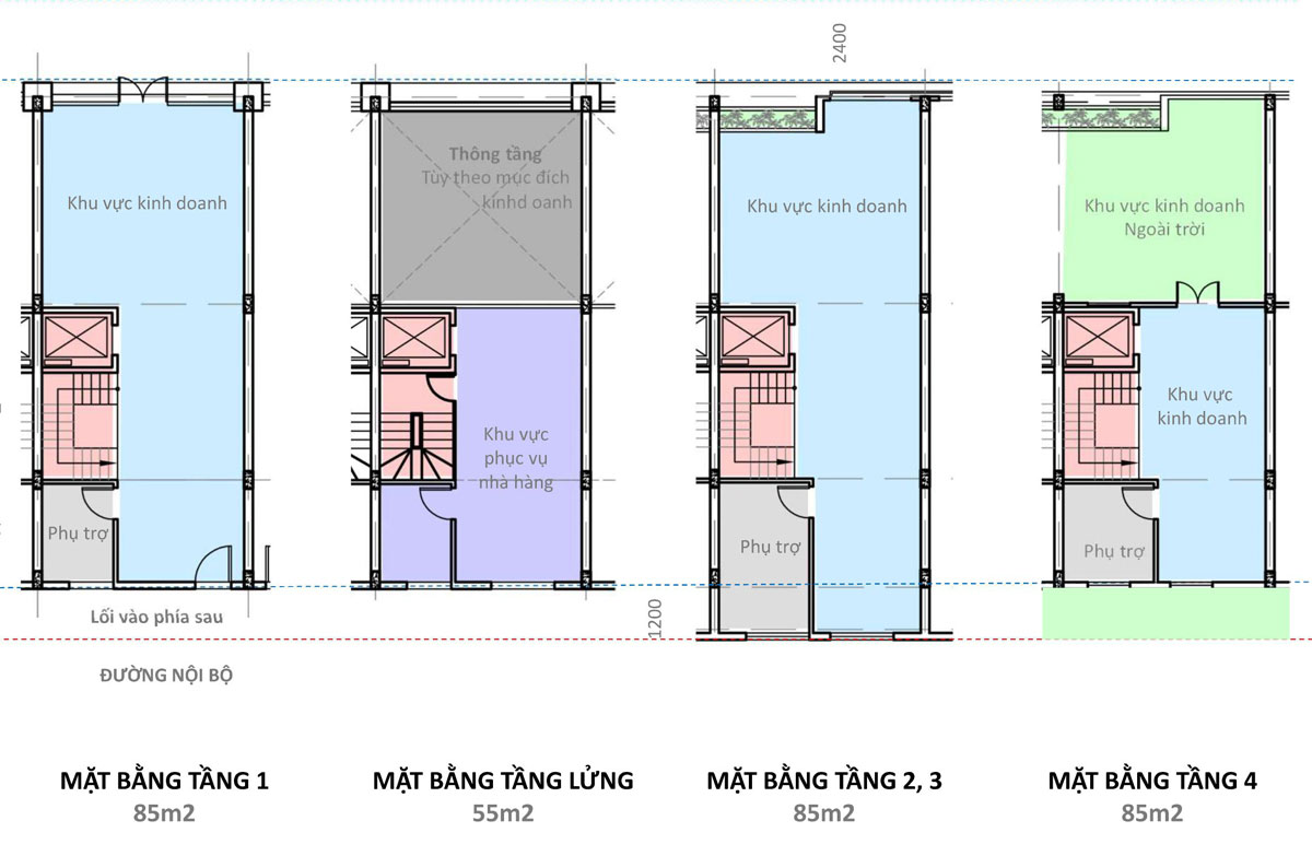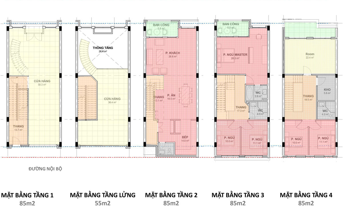 - Mặt bằng : Thiết kế bố trí tối đa số phòng ngủ nhỏ. Có thể lắp đặt thang máy đối với nhà 4 tầng.